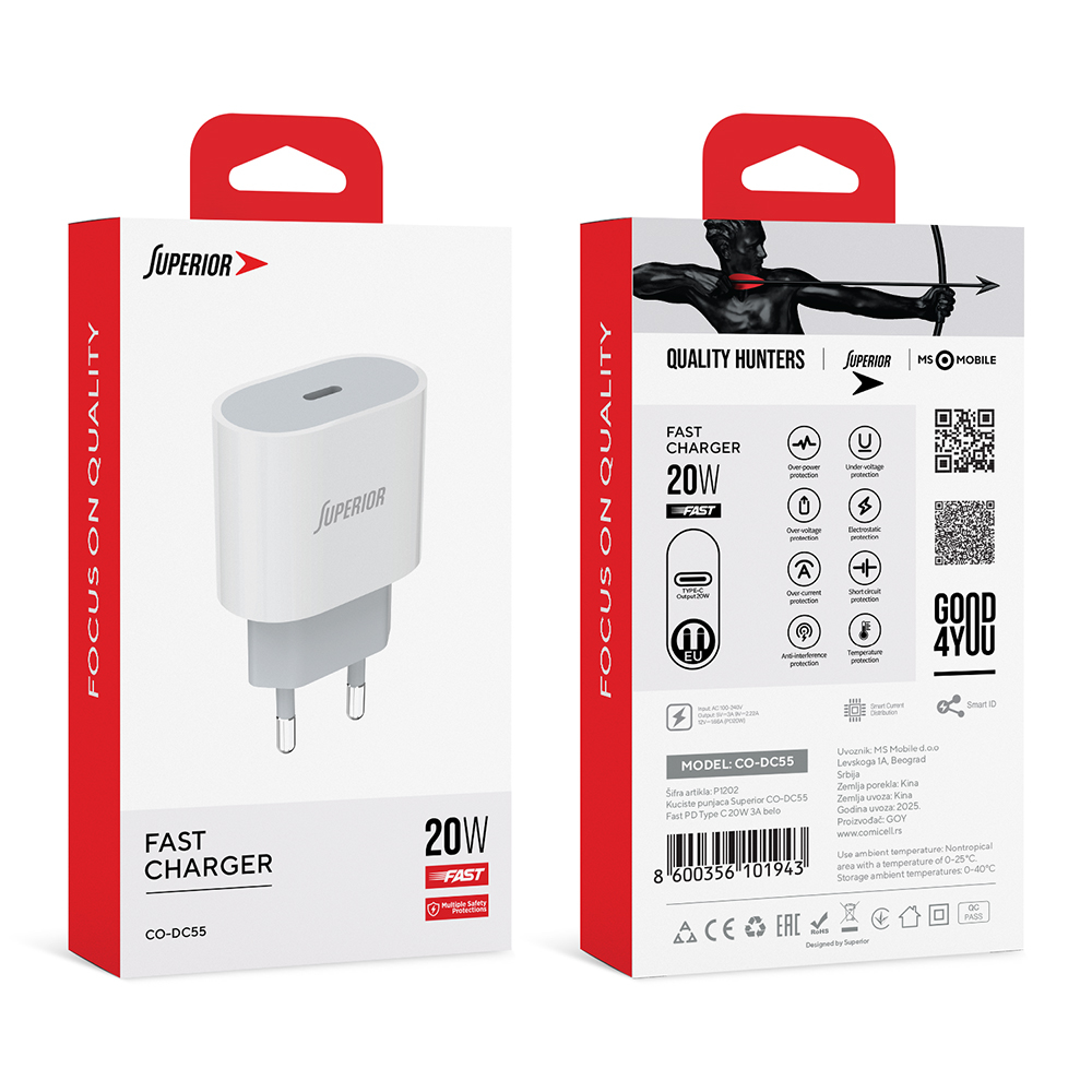 Kuciste punjaca Superior CO-DC55 Fast PD Type C 20W 3A belo