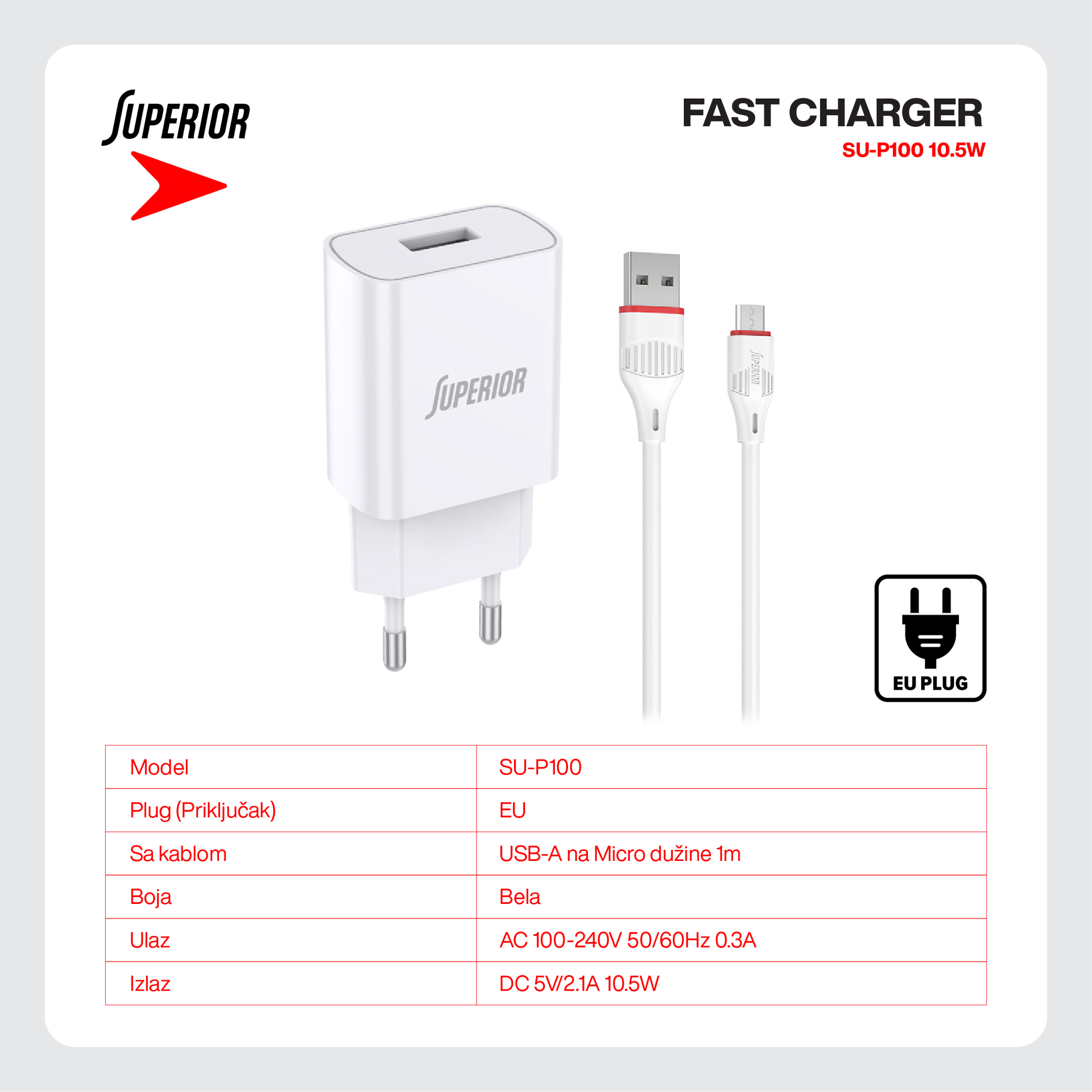 Kucni punjac Superior SU-P100 10.5W 2.1A Micro beli